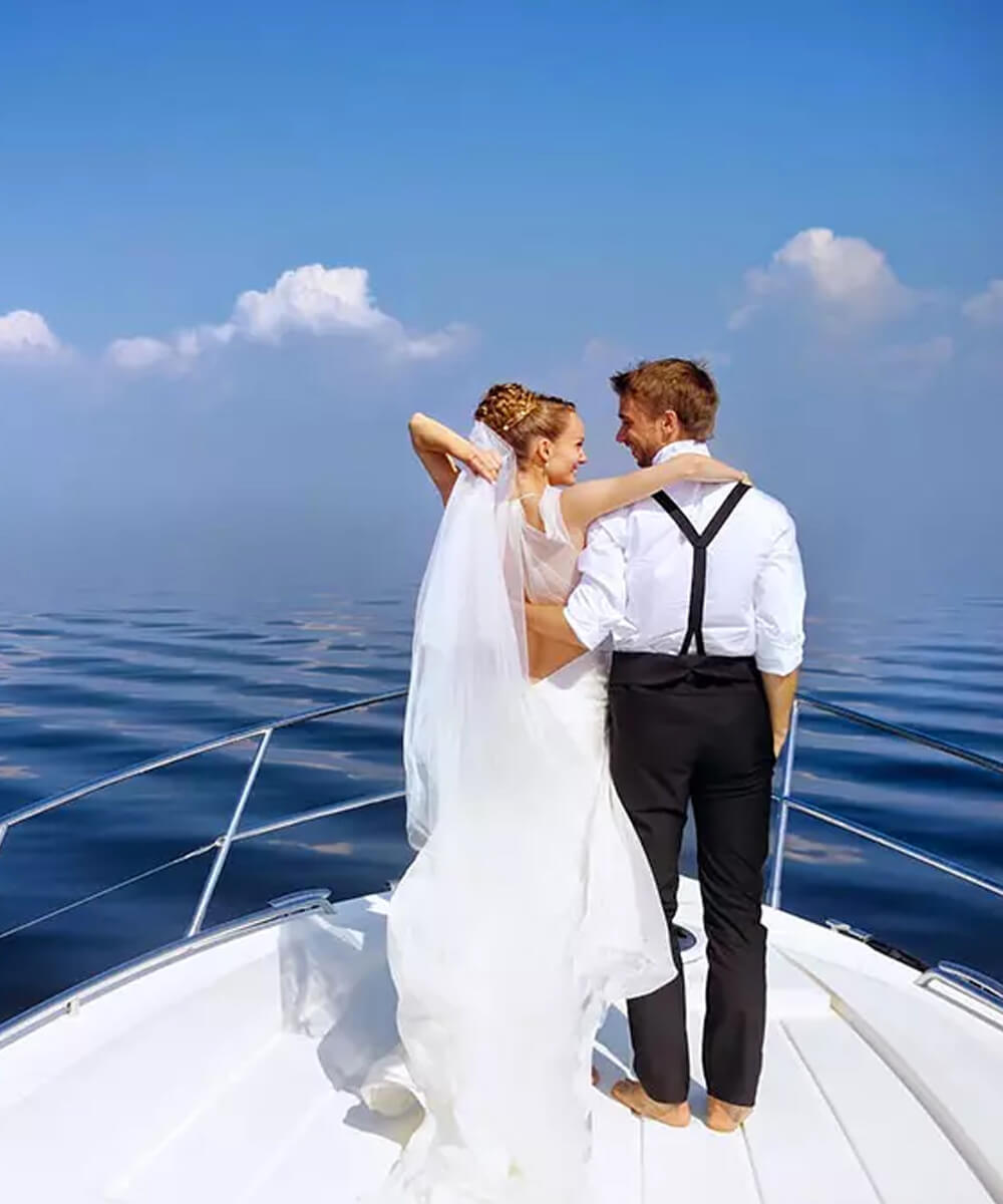 Imagine celebrating your wedding on your own private luxury yacht charter decorated with flowers as your guests sip champagne as you cruise the Mediterranean.